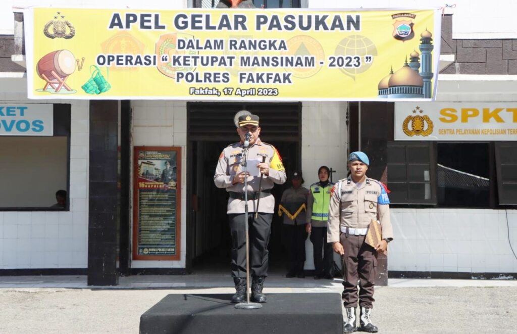 Kepolisian Resor Fakfak melaksanakan apel gelar pasukan Operasi Ketupat Mansinam 2023, bertempat di Lapangan Apel Mapolres Fakfak, Senin (17/4/2023) pukul 09.00 wit s/d selesai.