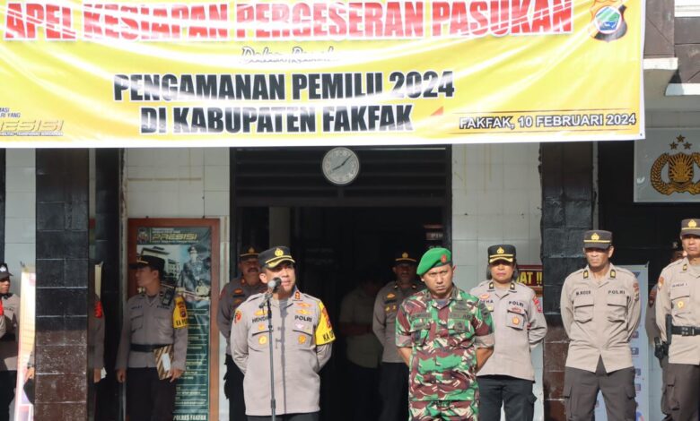 Kapolres Fakfak AKBP Hendriyana,SE.,MH saat Pimpin Apel Kesiapan mengatakan, “Dalam rangka Pemilu 2024 pada 14 Februari nanti, sebanyak 285 personel akan dikerahkan untuk pengamanan yang akan disebar pada 17 Distrik,” ujar Kapolres Fakfak.