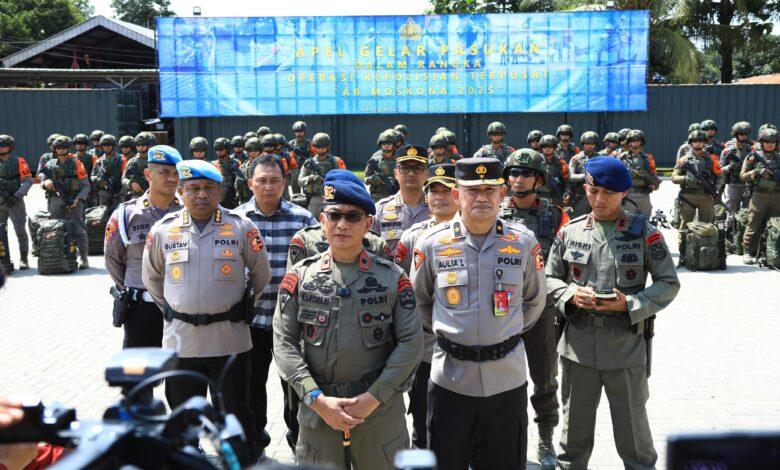 Korps Brimob Polri menggelar Apel Gelar Pasukan Operasi Kepolisian Terpusat “Alpha Bravo Moskona 2025” pada Jumat pagi (18/4), bertempat di Lapangan Tokubetsu Keisatsutai, Resimen II Pasukan Pelopor.