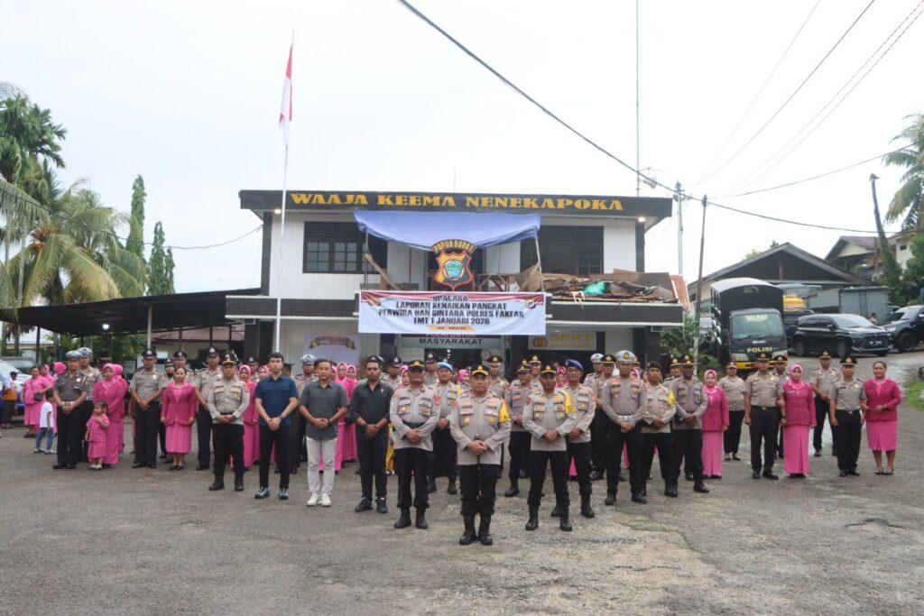 Fakfak – Polres Fakfak melaksanakan Upacara Laporan Kenaikan Pangkat Perwira dan Bintara Terhitung Mulai Tanggal (TMT) 1 Januari 2026, sebagai bentuk penghargaan negara atas dedikasi, loyalitas, dan pengabdian personel Polri dalam menjalankan tugas pelayanan, perlindungan, dan pengayoman kepada masyarakat.